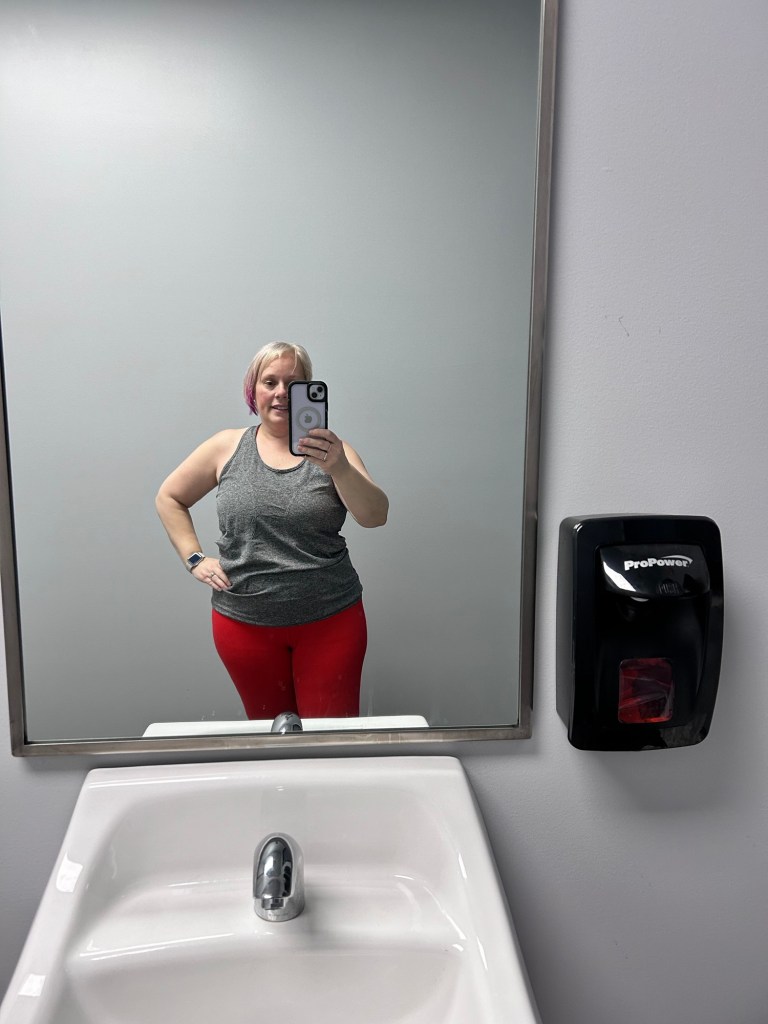 Friday morning I did my first weigh in. It had only been 4 days, but Fridays will be my regular weigh in day so I just went for it. I was down 4 lbs. which I was super pleased with. I decided this time around that I was going to be more realistic with nutrition so that it’s a plan that I will hopefully be able to stick to for a lifetime. The one thing I did give up was soda. I also got in 80-90 oz. of water each day. I don’t know how people with jobs that don’t allow frequent bathroom visits drink enough water a day. I’ve also done my measurements and will check those on the 1st of every month and have been taking pics almost daily.